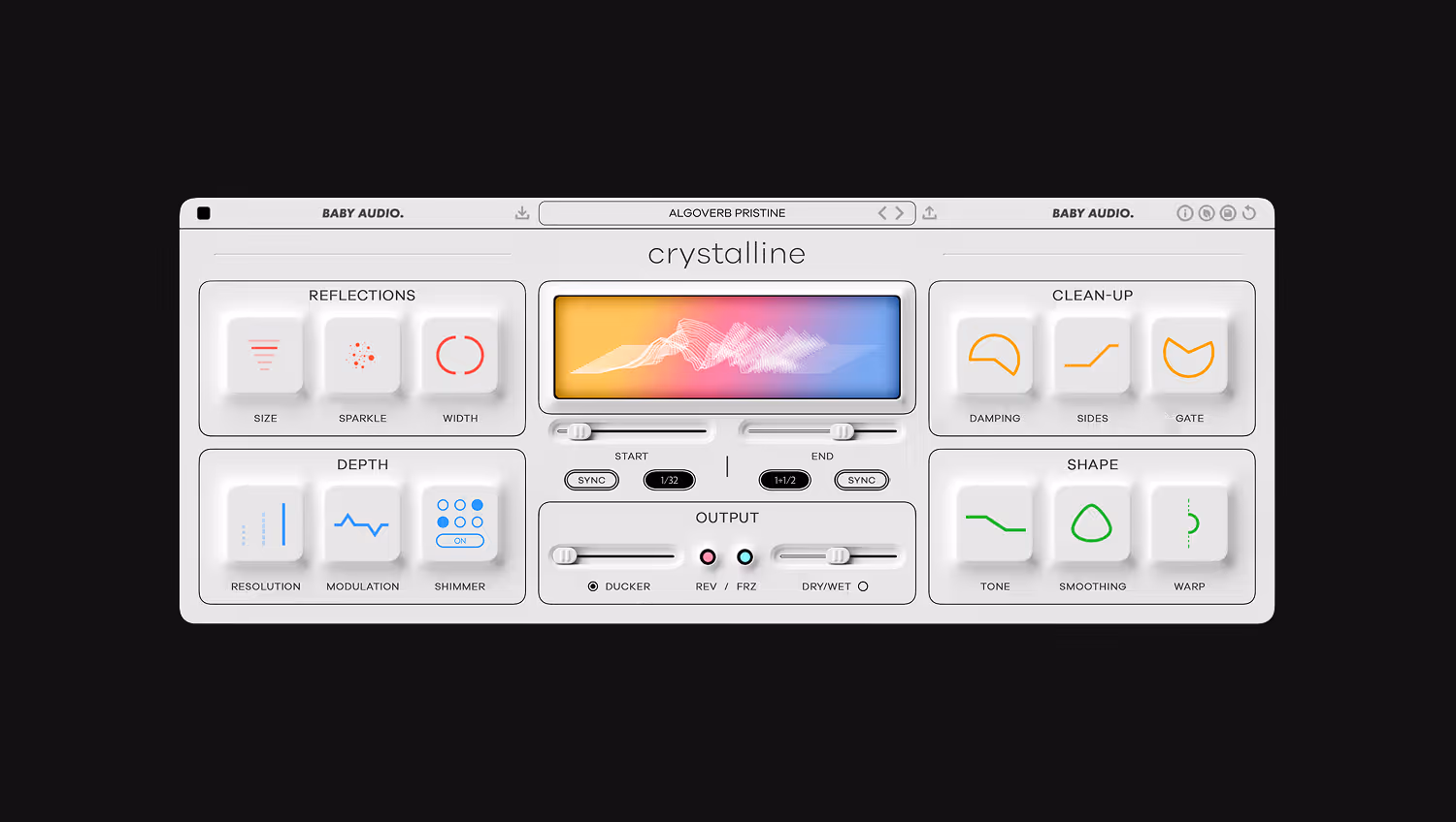Just like a chorus effect, the modulated reverb signal blends with the dry and unaffected tails to create a lush, evolving sound.