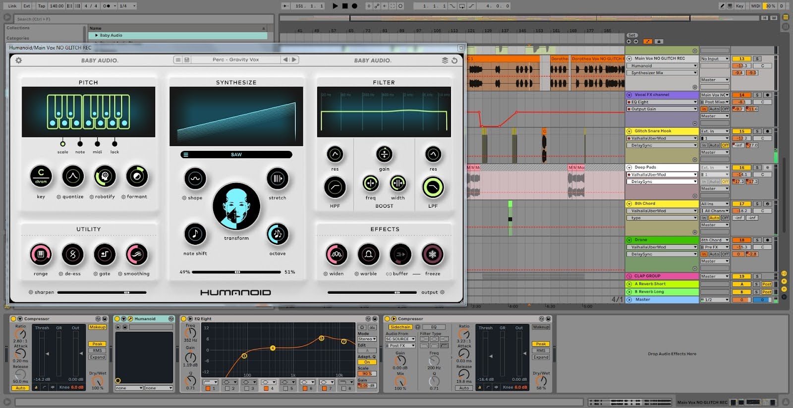Generally it's used for post-processing once the vocals have been recorded into Ableton Live. Still, sometimes I will use a hardware processor like one of my Culture Vultures or my Looptrotter Sa2rate 2 to dirty up the vocal outside the box before it goes back into Humanoid so that Humanoid has more to work with in terms of the overall harmonics and heaviness of the vocal.