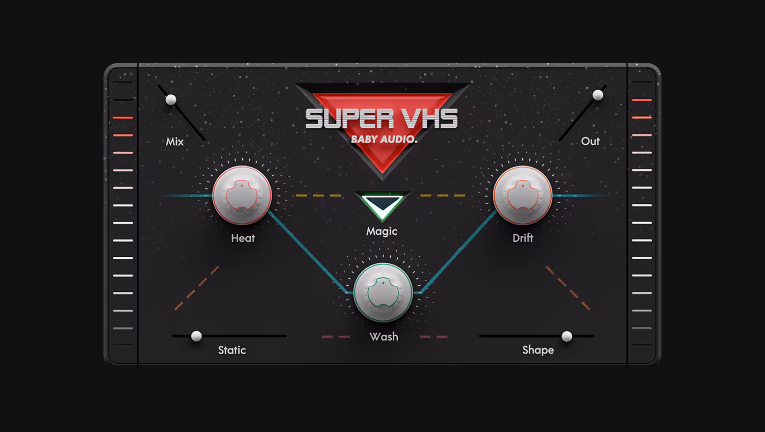Super VHS combines six colorful one-knob effects to instantly bring an authentic 1980s flavor to your tracks. Add a retro sound with tape saturation, pitch drift, sample-rate reduction, grainy reverb, static noise and a legendary stereo chorus.