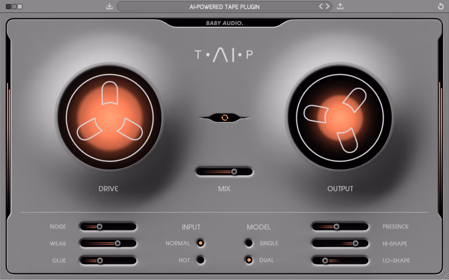 * Legal Disclaimer: TAIP was developed by Baby Audio using artificial intelligence technologies and neural networks to learn from and emulate the characteristics of certain hardware products (specifically, tape machines). No unlicensed (third-party) audio content was studied or copied to develop TAIP.